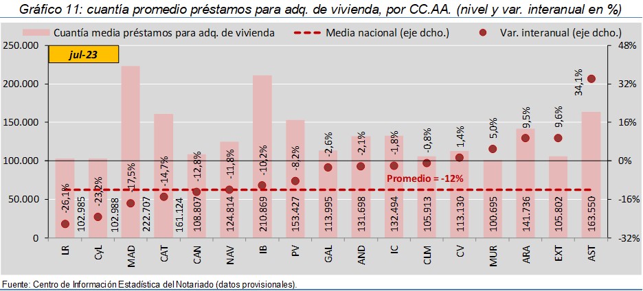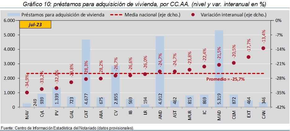 - Los préstamos para adquisición de vivienda disminuyen un 25,7%. Destacan las caídas en Navarra (-34,9%), Castilla y León (-33,2%) y el País Vasco (-32,8%)