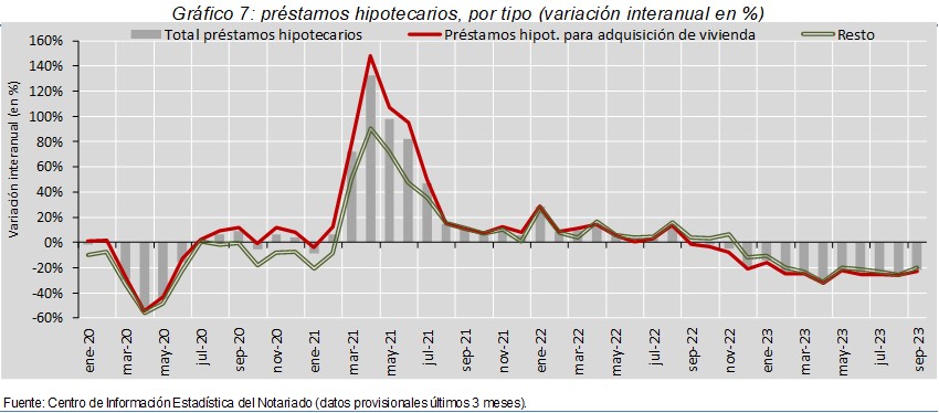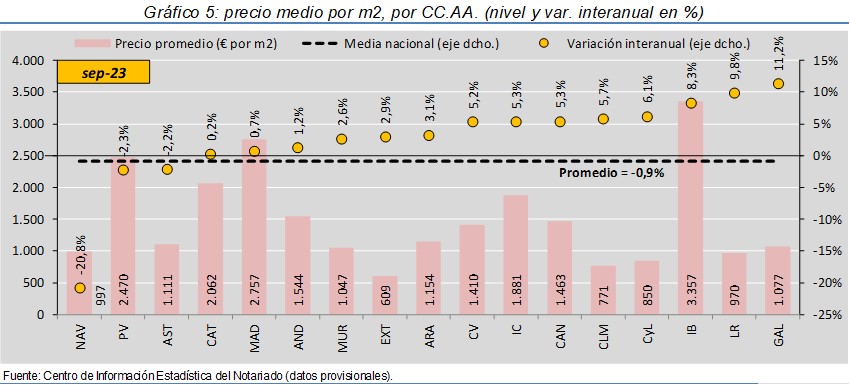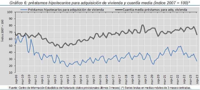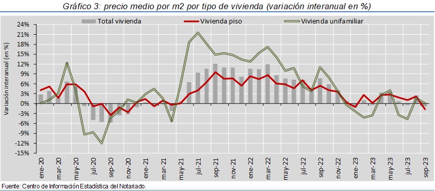 La compraventa de viviendas cae un 14,9% interanual en sep-23