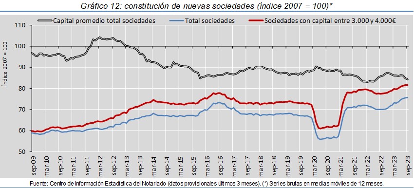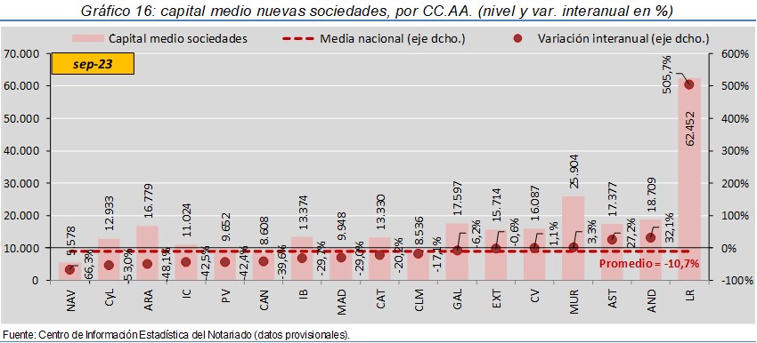 - La constitución de nuevas sociedades crece un 3,1%. Destacan los aumentos en Cantabria (27,0%) y Castilla y León (21,9%) y los retrocesos en La Rioja (-51,6%) y Navarra (-42,5%)