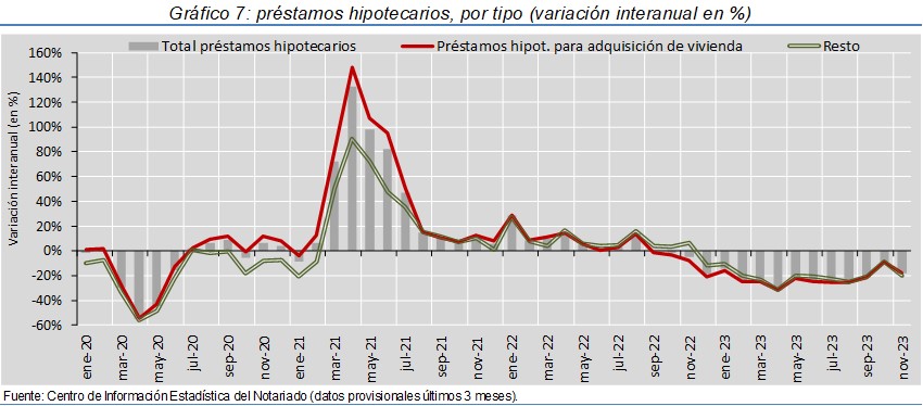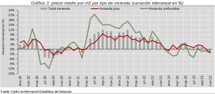 La compraventa de viviendas decrece un 7,5% interanual en nov-23