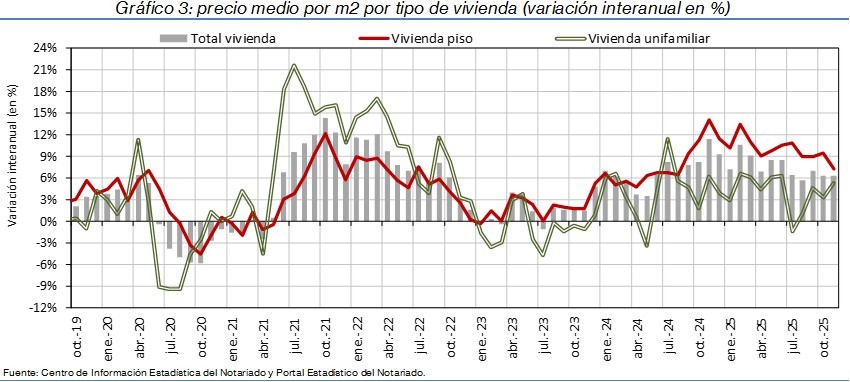 La compraventa de viviendas decrece un 2,4% interanual en noviembre