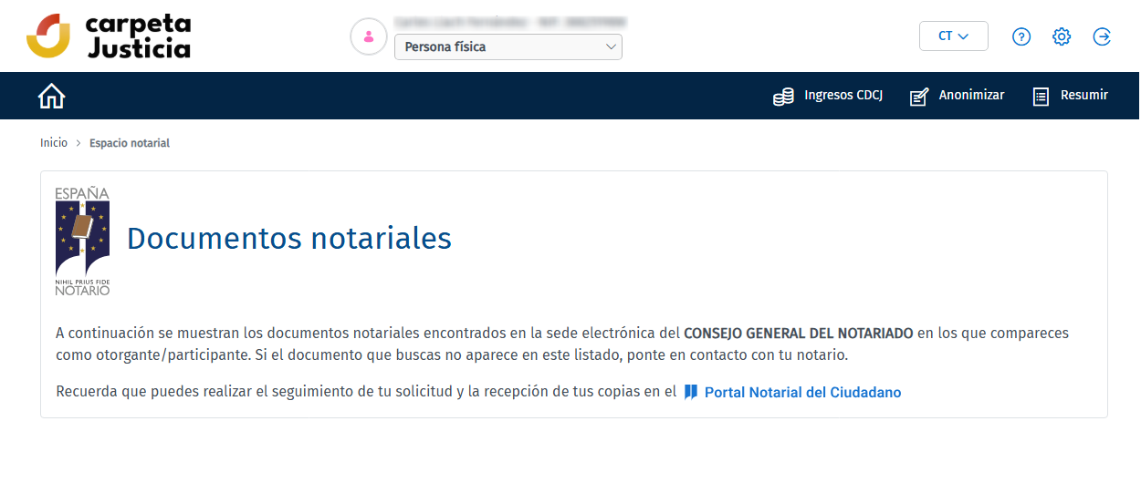 La consulta de la información notarial en Carpeta Justicia es complementaria a los servicios de la Sede Electrónica Notarial, a la que se puede acceder directamente desde la propia plataforma para solicitar copias autorizadas o simples de los documentos notariales, conforme a la normativa vigente y con todas las garantías de seguridad jurídica propias del sistema notarial.