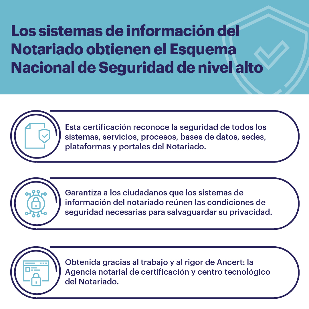 El sello ENS de nivel alto certifica entre otras cosas, la circulación por canales seguros de más de treinta millones de copias electrónicas de documentos notariales al año.