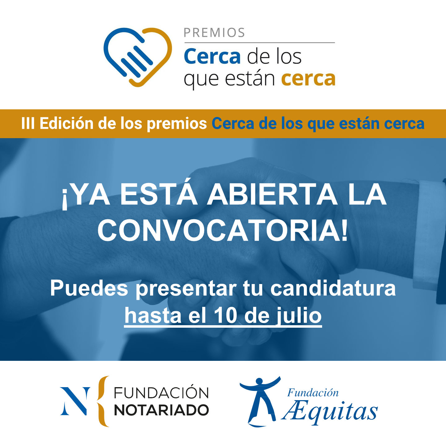 Fundación Aequitas y Fundación Notariado convocan la III Edición de los Premios Cerca de los que están cerca